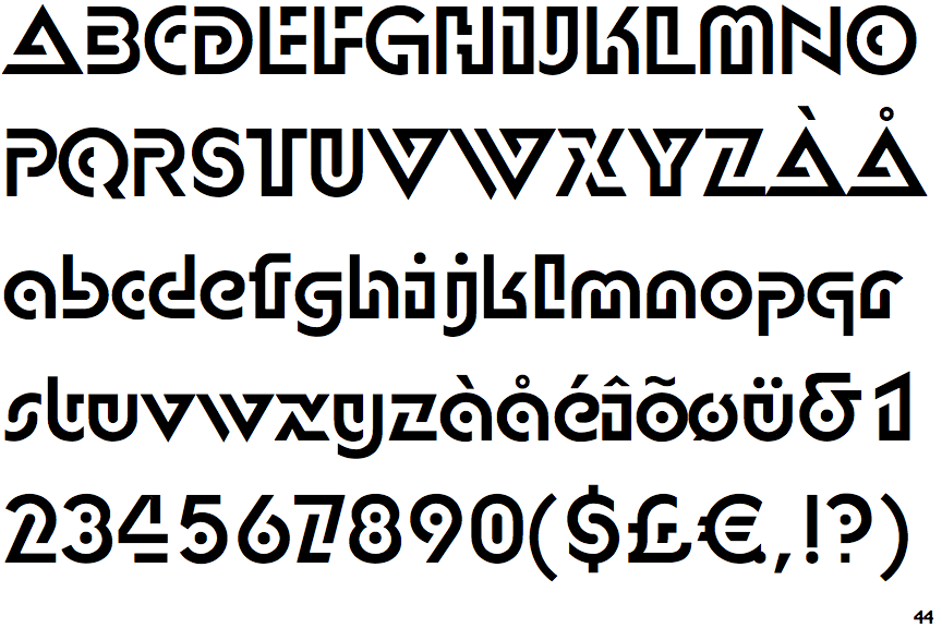 Morty, походу, сейчас он по-любому не жалует эту работу. Если вообще не покинул дизайн. Основа -- прямоугольники и эллипсы? Смысл делать зигзаги в Z, особенно в правом нижнем штрихе? С похоже на полкопирайта, Q -- на полкопирайта с доведенной до конца окружностью. Знак вопроса тоже полкопирайта, то есть уменьшенный в половину. H вообще непрофессиональна, I можно принять за единицу. Тройка едва отличима от восьмерки. U слишком сильно похожа на щит, а ассоциации с буквами затрудняют чтение; st вообще нельзя понять независимо от текста, x похожа на пару зигзагов. 4 сочлененная с матзнаком "плюс-равно". Похоже, это был студенческий акцидентный шрифт (то есть, не для набора больших и длинных текстов). Но даже для акцидентного шрифта он убог и примитивен.